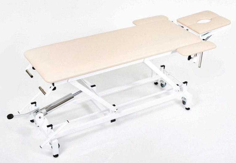 Массажный стол с гидроприводом высоты – КСМ-04г. Каркас сделан из стальной профильной трубы с порошковым полимерным покрытием, устойчивым к ударам, сколам и обработке дезинфицирующими растворами. Ложе и секции выполнены из фанеры, поролона, покрыты искусственной кожей SKADEN (Польша) устойчивой к истиранию, химическим дезинфектантам и УФ-излучению. Технология обтяжки - без швов, облегчающая процесс чистки и санобработки. Цвет обивки – по желанию заказчика. РУ №РЗН 2017/5682 от 20.04.2017 Модель может быть произведена с электроприводом. Сделано в России. Искусственная кожа SKADEN (Польша) Искусственная кожа Skai (Германия) Регулировки: Высота – гидро привод Головная секция – углы наклона от 20° до -40° и от0° до 70°, механизм Rastomat. Ножная секция - угол наклона от 0° до 10°, бесступенчатая механика, фиксация – винт Барашек. Спинная секция – угол наклона от 0° до 15°, механизм - газовая пружина (blok-o-lift). Передние упоры для рук - регулируются по высоте и углу поворота, фиксация – винт Барашек. Боковые упоры для рук – складные, с жесткой горизонтальной фиксацией. Стол снабжен каркасными опорами для стационарного размещения и колесами для перемещения. Переключение с опор на колеса и обратно происходит с помощью механического педального привода. Массажный стол поставляется в собранном виде. Рекомендуем заказывать жесткую упаковку (Ж/У) при транспортировке изделий на дальние расстояния.