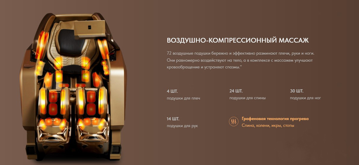 Кресло действительно мощное, хорошо прорабатывает спину, шею и ноги, после тяжёлого дня усталость уходит очень быстро. Режимов много, можно настроить под себя – от мягкого расслабляющего до глубокого массажа, управление простое и понятное, долго разбираться не пришлось.